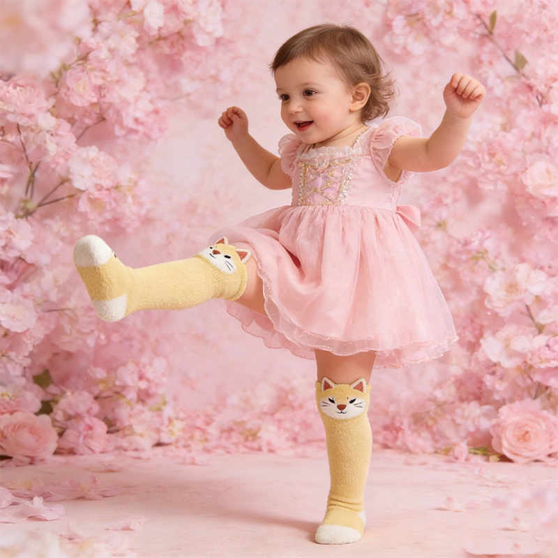Featuring a knee-high extended design that gently wraps and warms baby's knees, our socks offer cozy support for crawling and toddling. With cute cartoon patterns and multiple color options, they elevate everyday outfits with playful style. This China OEM fashionable baby socks for sale collection blends comfort and current trends, making them a smart choice for forward-thinking buyers.